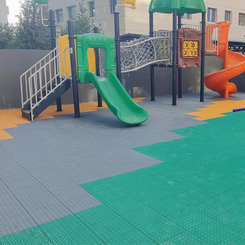 The outdoor fitness modular floor mat is made of environmentally friendly materials.Its surface anti-slip texture and deep drainage structure ensure zero water accumulation on rainy days and provide dual guarantees for sports and safety.